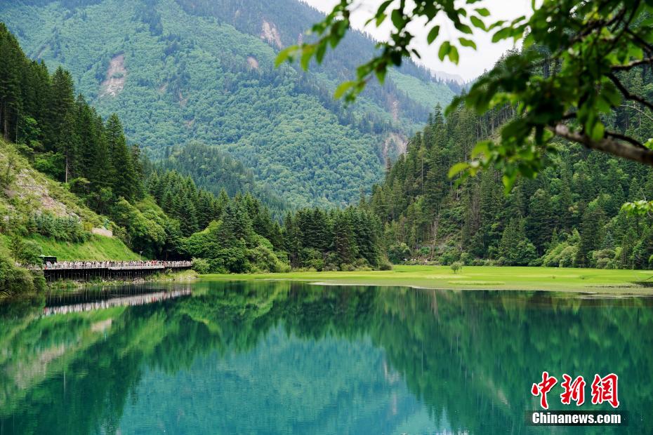 九寨溝風(fēng)景如畫引游人